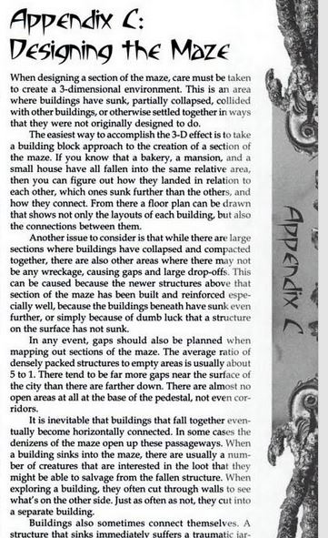 Much like Seattle’s Underground or the University of Washington’s steam tunnels, underground areas evolve over time as buildings are covered over, new tunnels are dug, and previously existing underground areas are expanded. Take this idea to extremes and you might wind up with something like the city of Penance’s undercity from the Oathbound campaign setting, a sprawling three-dimensional maze with centuries of architecture layered atop each other. Done this way, it’s an inverse dungeon where the oldest parts are on the bottom with increasingly newer constructions closer to the surface. Contrariwise, a mine or a dungeon may be equally dangerous at the deepest levels, but it’s more by dint of defensibility or because the miners dug too deep and let loose something better left buried. As Saruman noted to Gandalf about the Mines of Moria, “The dwarves delved too greedily and too deep. You know what they awoke in, the darkness of Khazad-dum…Shadow and flame.” A city in layers more closely matches a setting like the Underdark, where the oldest and most settled parts are deep underground and the areas the characters explore are where those from below are pushing up to the surface. Either way, developing a history for a map allows for a more interesting space to explore than would otherwise be the case in a homogeneous setting where the challenge is arbitrarily dictated by a single element like the difficulty of the monsters that inhabit it.