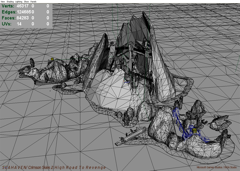 Sea Haven main area level mesh in Maya for Crimson Skies