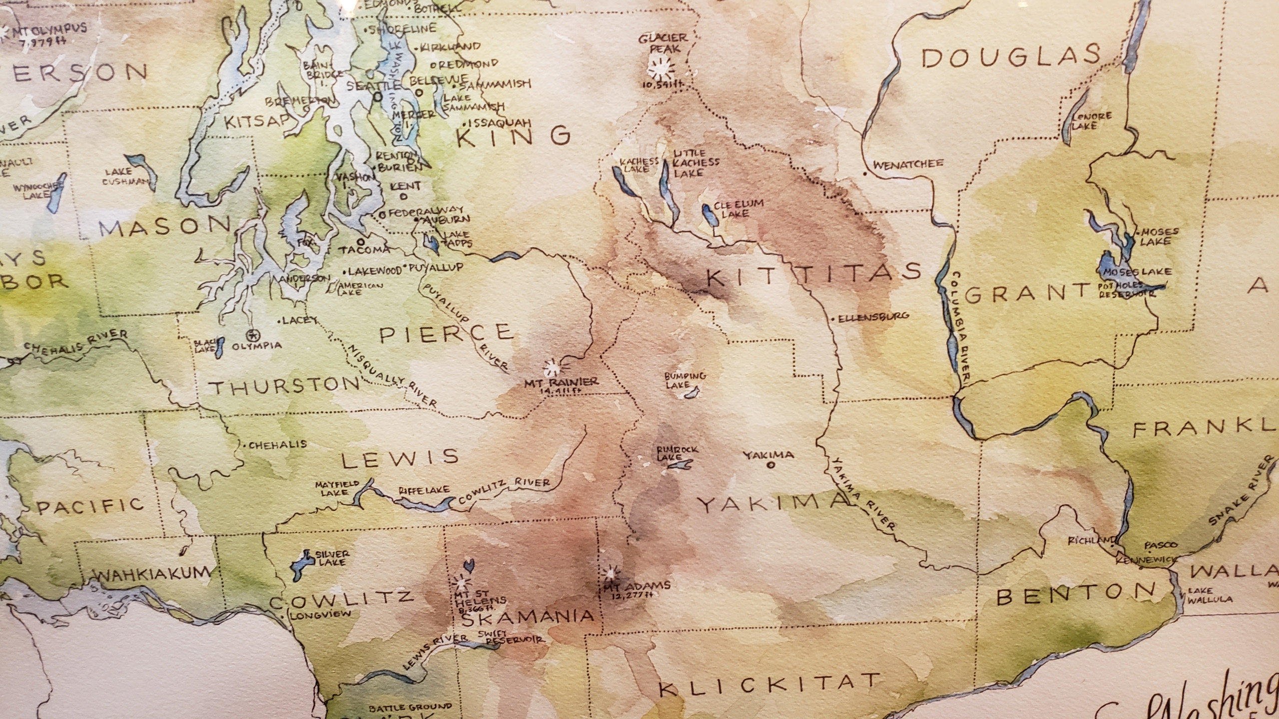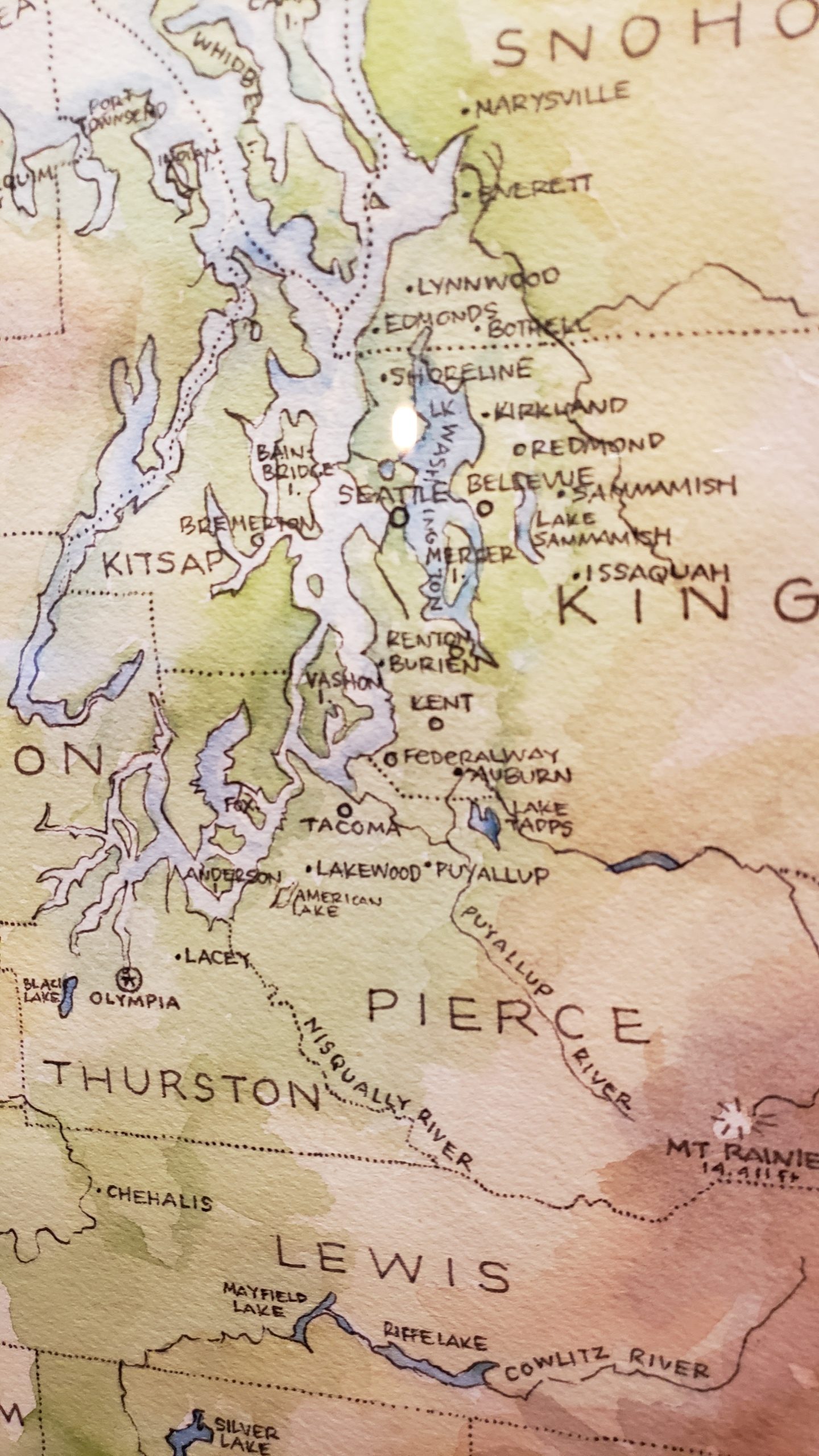 Washington Map by Elizabeth Person – Puget Sound detailWashington Map by Elizabeth Person – Cascades detail