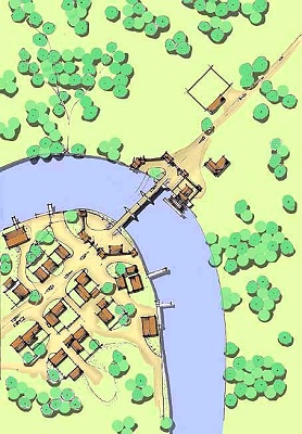 The typical settlement may develop at the bank of a river, atop an easily defended rocky outcropping, beside a sheltered bay, and many other such places that offer arable land, fish or game, or other ready source of food along with protections from storms and flooding or other natural disasters like fires, mudslides and volcanic eruptions. Even then, settlements may arise in inhospitable areas if that’s the only place to live close enough to rare resources like precious metals or gemstones. If the settlement exists along a trade route or main path of travel (for example, as a seaport conveniently located as a stopover point), it may grow. As it does, walls and fortifications develop and other structures are added to facilitate travel, trade, and mercantilism. Increasingly, housing for permanent and transient populations multiply and entertainment venues also develop. In a planned sense, a Roman settlement offers all of these, typically following a fairly uniform plan with a fortified camp, a forum and basilica, an amphitheater, several temples, markets, and bathhouses, all enclosed by a wall. As cities grow, they often incorporate other settlements and expand beyond the bounds of their original walls. Those existing structures may constrain development much the same way natural land features do.